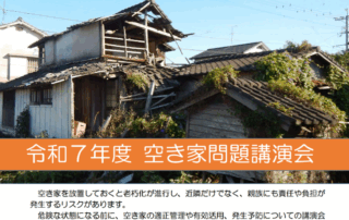 <画像クリックでダウンロード> 令和7年10月26日(日)は、佐賀市の主催による「令和7年度 空き家問題講演会」に当団体代表 塚原が登壇いたします。 テーマは、将来の「危険空き家」にしないために、空き家問題の現状や課題の事例紹介、早めの対策に [...]