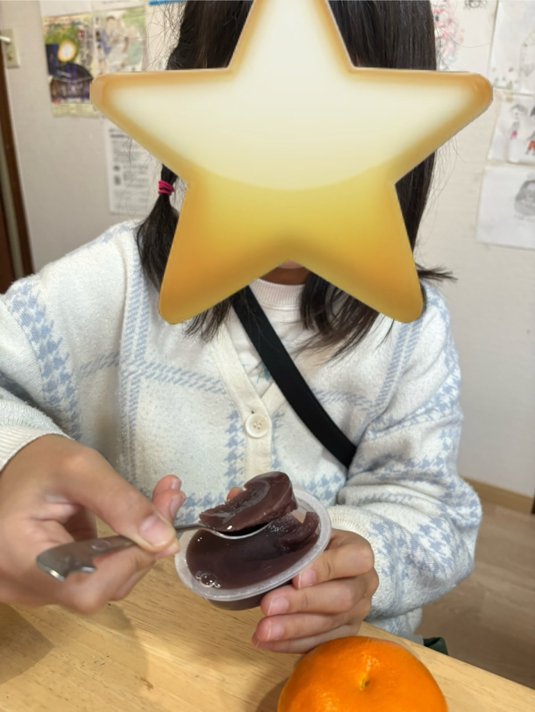 ゼリーと羊羹があり、好きなものを選んでおやつに頂きました✨