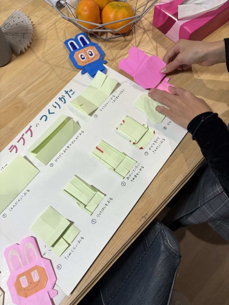 最近大流行のラブブを折り紙で折ったのを見て「かわいい!これ作りたい!」と女子に大人気✨