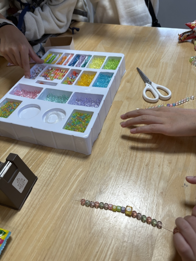 それまで自分の名前をアルファベットで作りたくさんあるビーズの中から真剣に選んで…♡