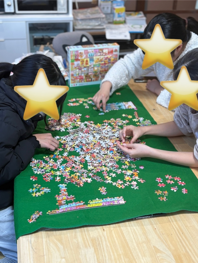 それぞれ「私サワーペーパーする!」 「じゃあ私はきなこ棒任せて!」と担当を決めてピースを見つけるとその担当にお願いするという、ナイスなチームワークで今日はだいぶ進んで型ができてきました*\(^o^)/*
