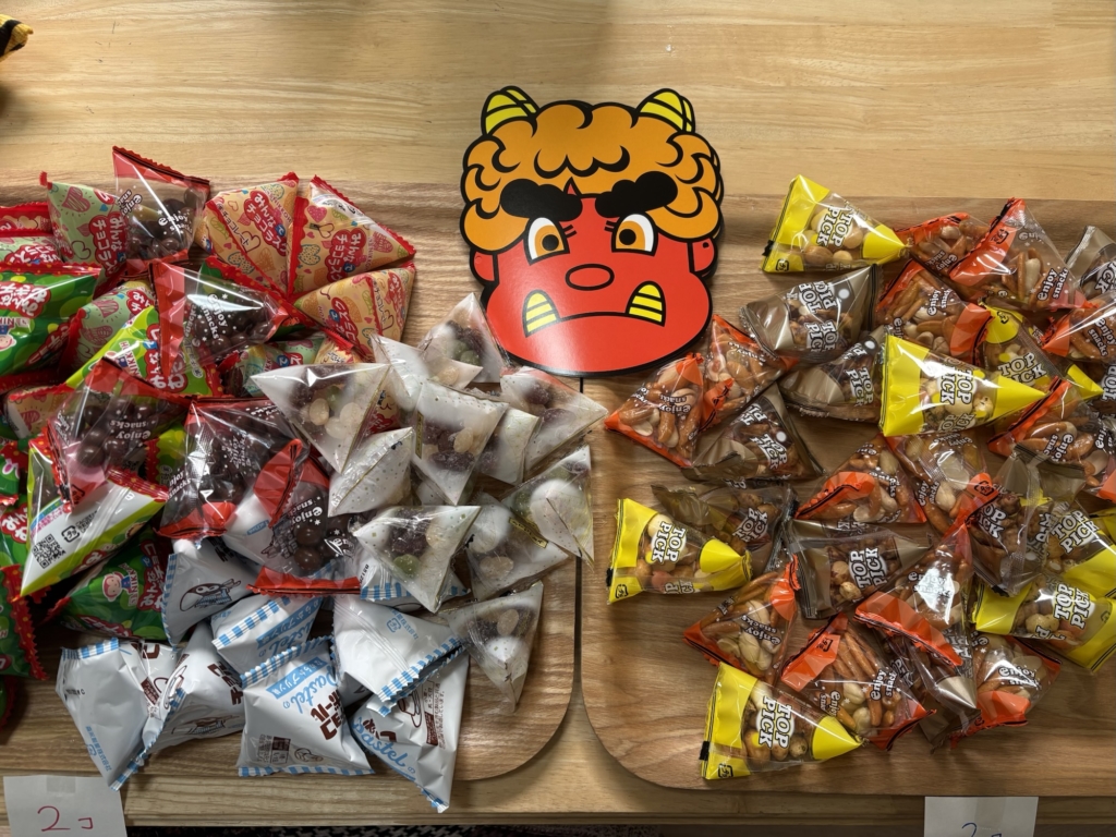 中学生が豆【色々な事を考慮し個包装豆(^^;)】を「鬼は〜外〜!」とまいてくれました